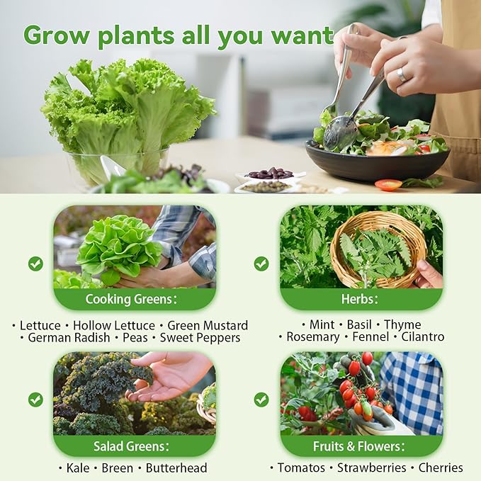 - Complete Starter Kit--- We include 20 plant baskets, 36 sponges and other accessories to reduce your burden. Perfect for beginners set up in minutes and harvest in weeks. Our tower garden growing system versatility and ease of use make it a must-have for any green thumb or plant lover