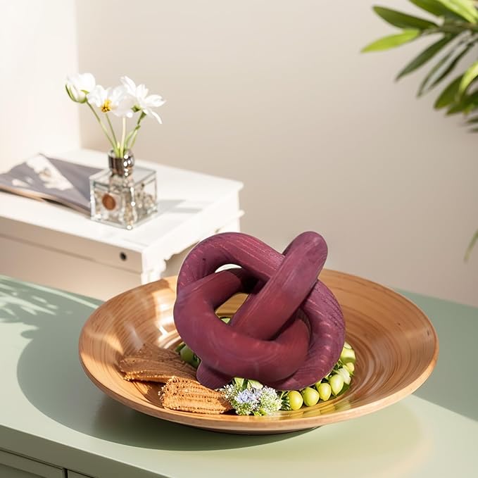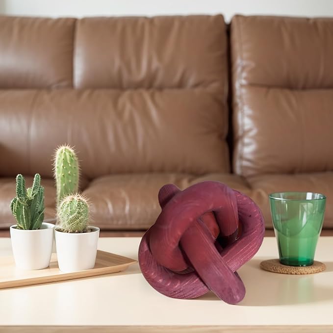 Wood Knot Decor -Coffee Table Decor Shelf Decor Table Books Hand Carved Home Decoration Boho Country Rustic Modern Shabby Chic Style 3 Link Wooden Knot Chain Link Decor (Burgundy)