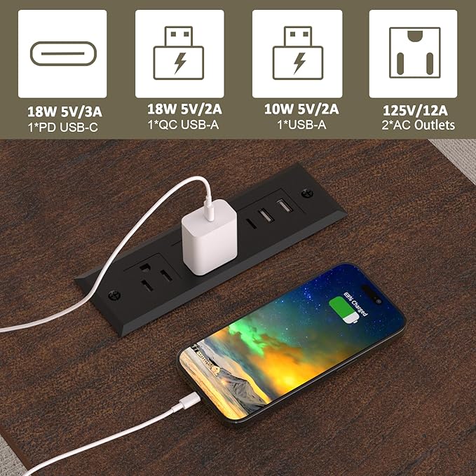 - Fast Charge Station-This living room end table with 18w fast charging can short the charging time by 2 times compare compared to a 10w. This nightstand comes with 2 standard AC power outlets, 1*PD Type-C USB port, 1*QC(3.0), and 1* USB port. No need to worry about finding your fast charger.