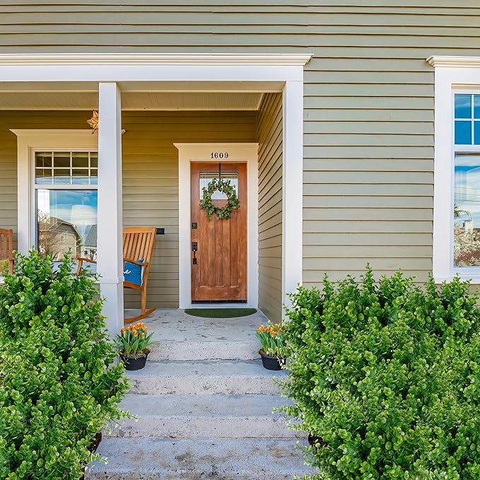 Sggvecsy Artificial Flowers for Outdoors 24 Bundles UV Resistant Boxwood Shrubs Artificial Eucalyptus Fake Plants Faux Plastic Greenery for Farmhouse Garden Indoor Outdoor Home Wedding Decoration