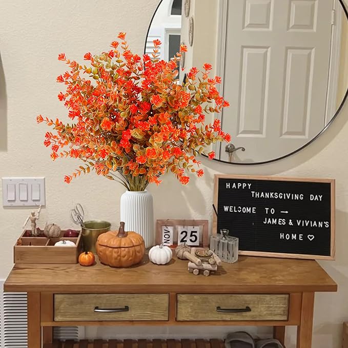Sggvecsy 12 Bundles Artificial Flower Fall Eucalyptus Plants Fake Bushes Boxwood Shrubs Outdoor Greenery UV Resistant Faux Plastic Plants for Home Garden Indoor Fall Thanksgiving Autumn Decor (Fall)