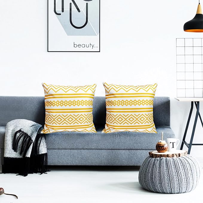 Decorative Throw Pillow Covers Set of 2 Chrome Yellow Boho Pillow Covers 16x16 Inch Throw Pillow Cover Linen Pillowcase Modern Farmhouse Outdoor Pillow Covers for Couch Sofa Bed Living Room