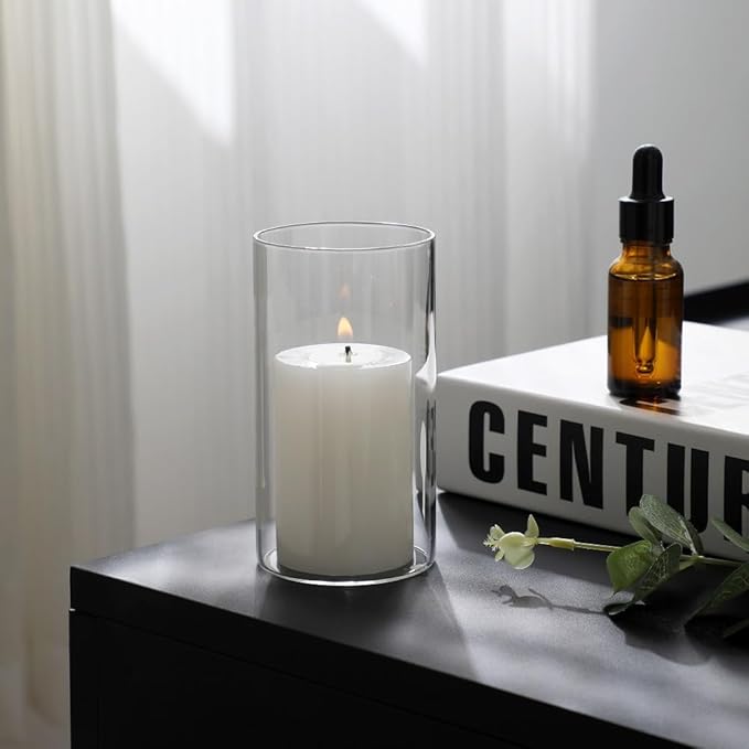 - HIGH QUALITY MATERIAL: The pillar candle holders are made of high borosilicate glass, which is exquisite workmanship, smooth bottle mouth edge, no sharp corners, the thickened glass base is more sturdy and not easy to fall. transparent shape design makes it easy clean, so you don't need worried spend much time to clean it