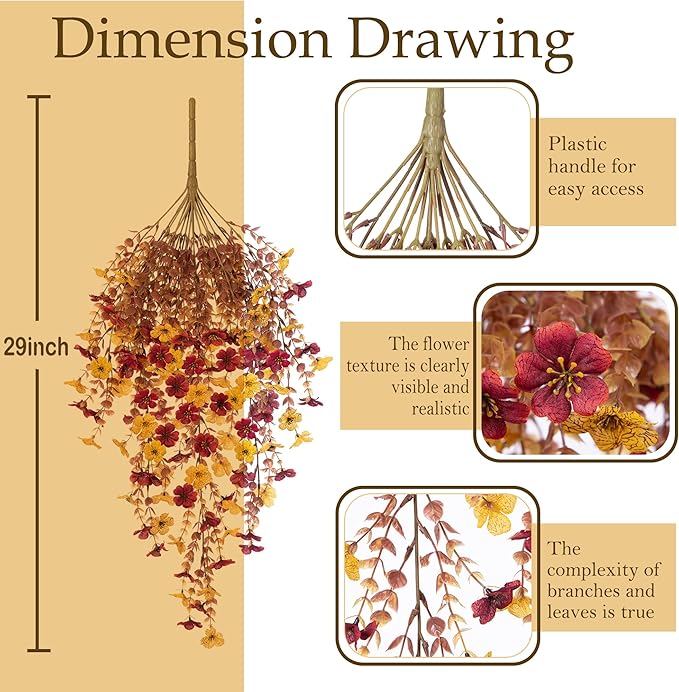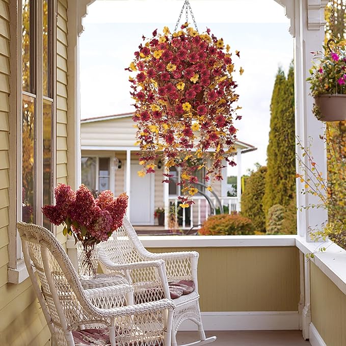 - Autumn Artificial Flowers Home Decorations: These artificial hanging plants add a touch of elegance to your home, Thanksgiving,garden, porch, patio, or windows, suitable for both indoor and outdoor enhancements. A beautiful way to bring the charm of nature into your living spaces.