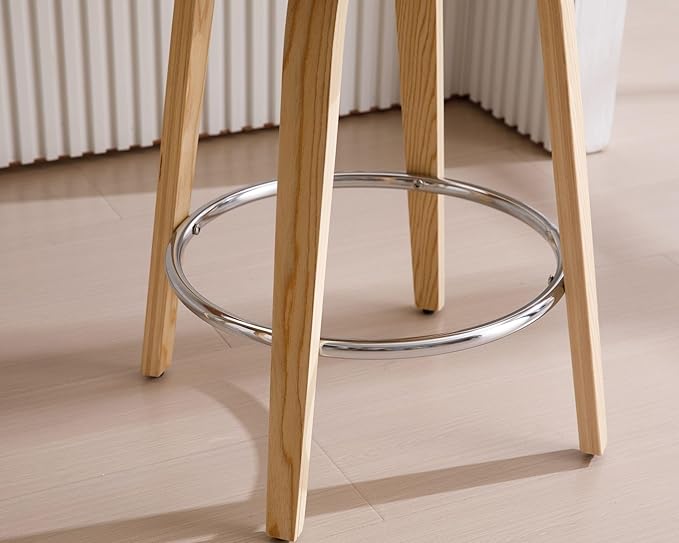 - Sturdy Solid Wood Frame: The engineering solid wood frame adopts a natural finish and has a unique wood grain appearance, adding a sense of refinement to your space. Smooth tapered legs with built-in circular metal brackets, stable and comfortable. The four adjustable footstools not only protect your floor surface but also easily level and stabilize the stool. This counter hight chair can withstand 250 pounds