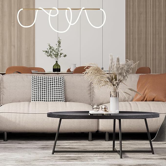Modern Coffee Table, Oval Wood Coffee Tables Center Table with Metal Leg for Living Room, 47 Inch Living Room Table Accent Furniture (Oval Coffee Table, Black)