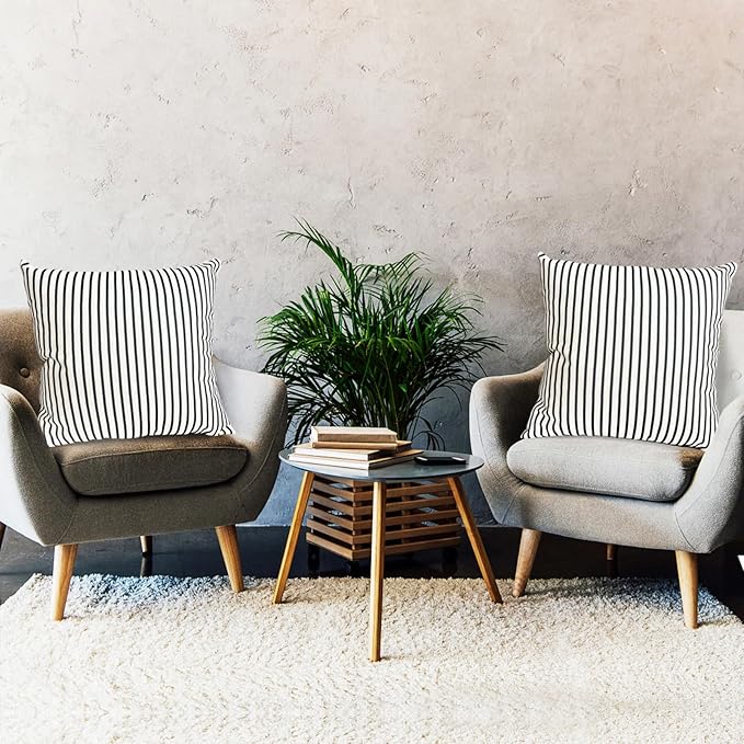 Decorative Throw Pillow Covers Set of 2 Black Striped Pillow Covers 18x18 Inch Throw Pillow Cover Linen Pillowcase Modern Farmhouse Outdoor Pillow Covers for Couch Sofa Bed Living Room