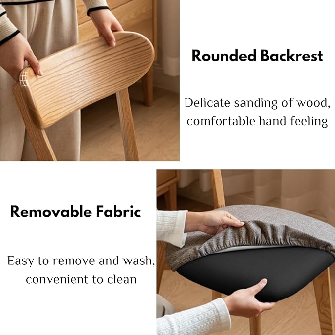 100% Solid Oak Wood Dining Chairs,Mid Century Modern Dining Chairs with Upholstered Cushion,Kitchen,Dining Room Chairs Set of 4 (4, Original Color Grey Upholstery)
