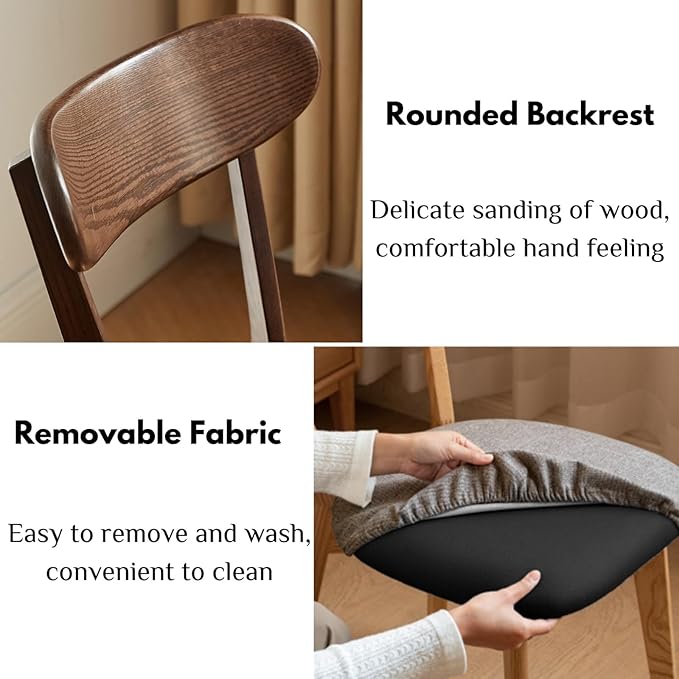 - 【Comfortable Design】The design of our wood chairs prioritizes comfort, featuring rounded edges, a wide seating depth, and a curved backrest that conforms to the natural curve of your spine. They also include weight-bearing support and non-slip feet for added stability and security.