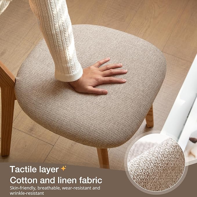 100% Solid Oak Wood Dining Chairs,Mid Century Modern Dining Chairs with Upholstered Cushion,Kitchen,Dining Room Chairs Set of 1/2/4 (1, Original Color White Upholstery)