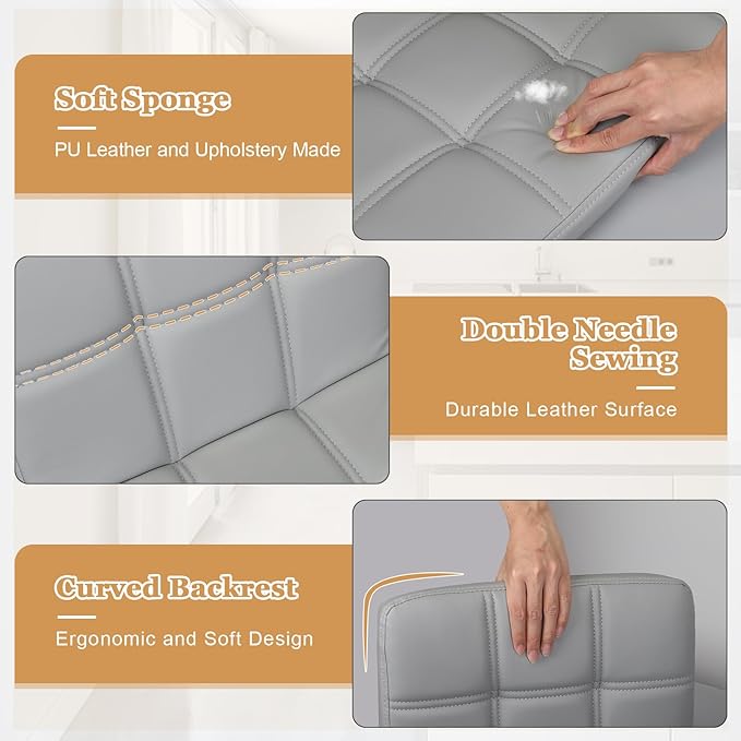 - Thick Padded Foam:Made of fabric and upholstered bar chairs has bigger size in soft padded foam.Double-needle stitching PU leather for easy wipe and wear-resistant.