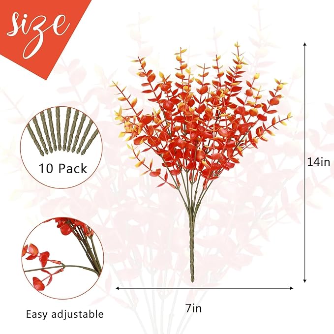 - 10 Pcs Fit 10" Size Planter: Own 10 at a time. You can have more fall decoration options.Each fall boxwood size is 7" Wide x 14" high, can fill at least 10" size pots.Each shrub has 7 stems and generous leaves also add a touch of autumn to your space