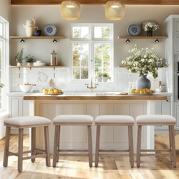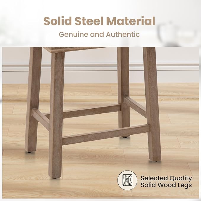 PHI VILLA Bar Stools Set of 4 - Solid Wood Legs Counter Height Barstools with Upholstered Saddle Seat, 24 inch Kitchen Counter Island Stools