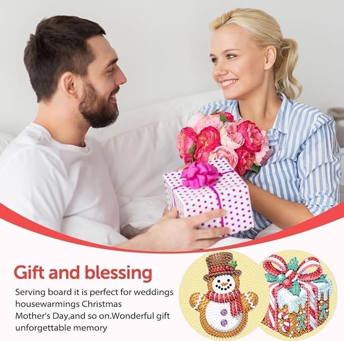 eniref 8 Pcs Christmas Diamond Art Coasters Kits with Holder, Gingerbread Snowman 5D DIY Diamond Pinting Coasters Acrylic Round Cup Coaster with Cork Pads for Tabletop Protection 10×10 CM