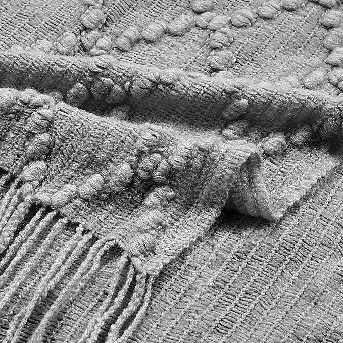 BOURINA Light Grey Throw Blanket 50 x70 Inches Jacquard Argyle Throw Textured Solid Soft Throws and Blankets for Sofa or Bed Knitted Decorative Blanket