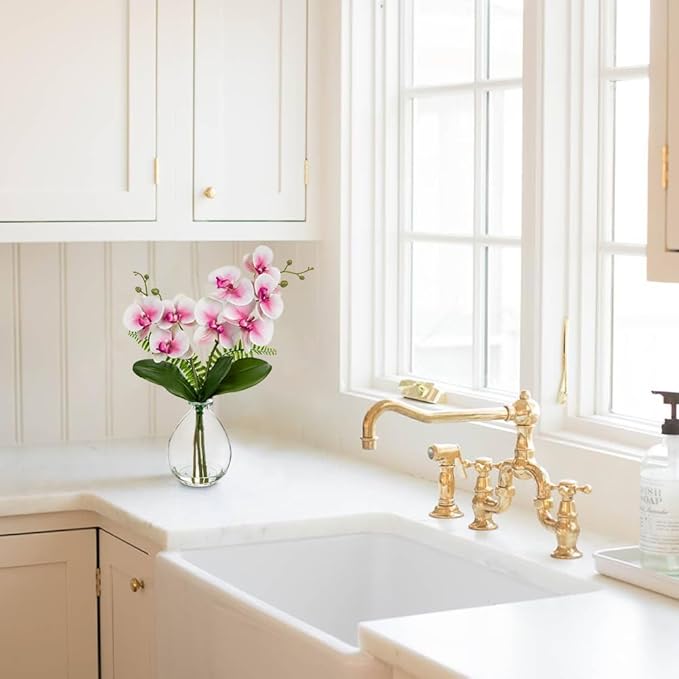 - Artificial Orchids for Decoration - The pink artificial flowers in vase are perfect decoration to your office, shelf, bathroom, living room, bedroom, window, table centerpieces, dining room, side table, cabinet, desk, bedside nightstand, kitchen, foyer, hotel, etc. It also can be used as a centerpiece for weddings, parties, or seasonal celebrations, adding a natural and sophisticated touch to any setting