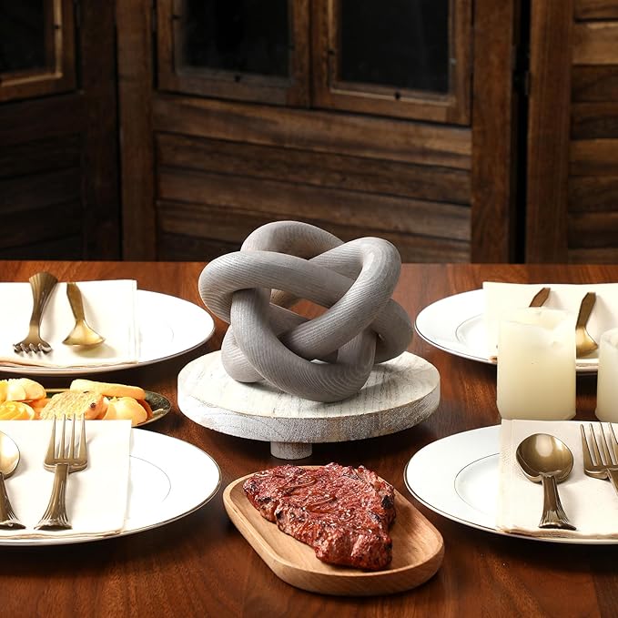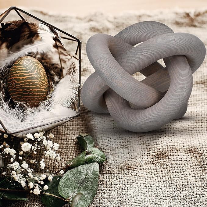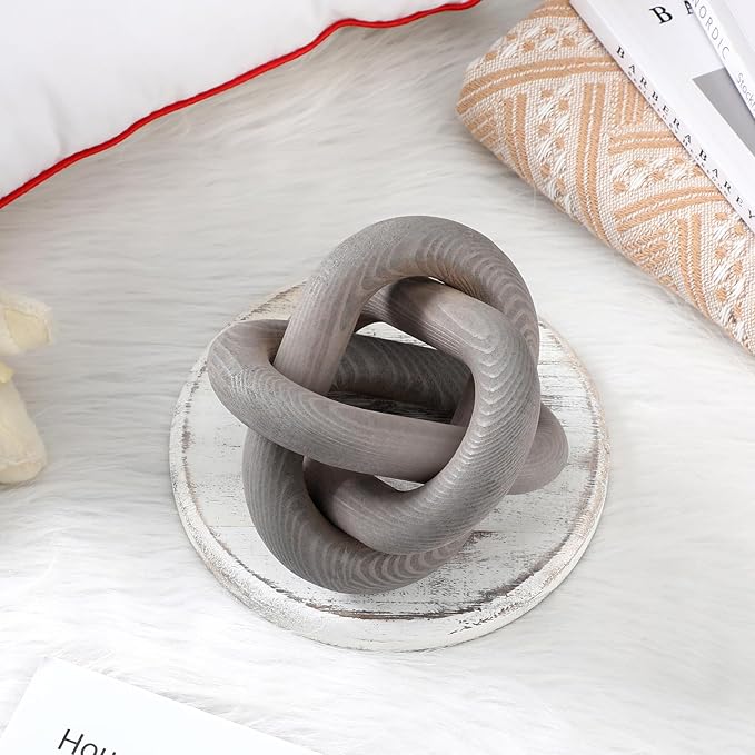 3 Link Wood Knot Decor - Hand Carved Coffee Table Decoration, Boho Chain Link Decor, Modern Shelf, Rustic Objects for Home Living Room Bedroom(Gray)