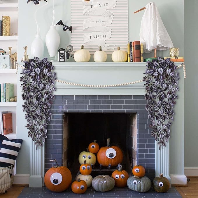 - [Unique Color Scheme]: Our fake hanging plants feature a bold color combination with deep purple and white on the front of the leaves, resembling an eye, and a rich brown on the back. The stems remain a natural green, providing a contrasting yet harmonious look that's perfect for both indoor and outdoor decoration.