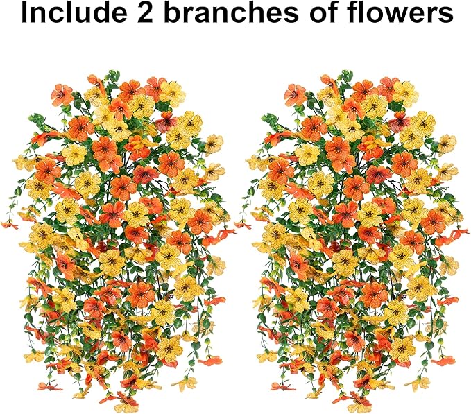 - Durable and UV Weather-Resistant: The fake hanging plants flowers are made of high quality silk cloth and plastic, UV and all weather resistant, waterproof and no fade in the sun and rainstorm.