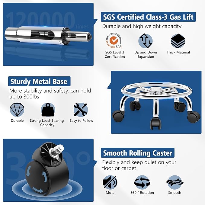 - Silent Mobility: Glide effortlessly across any surface with our drafting chair’s whisper-quiet swivel casters, designed to protect your hardwood, tile, carpet, and other floors from damage