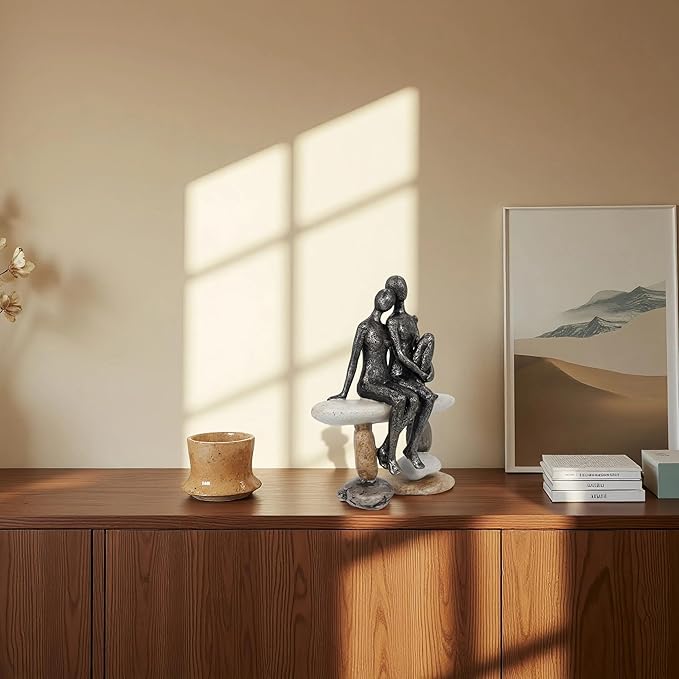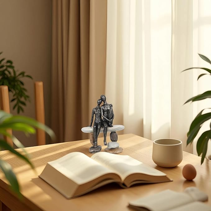- 【Symbol of Eternal Love】 Two abstract figures lean into each other, seated on a stone-like base—capturing intimacy, comfort, and lasting bond, ideal for a wedding gift, Valentine's Day, or birthday.