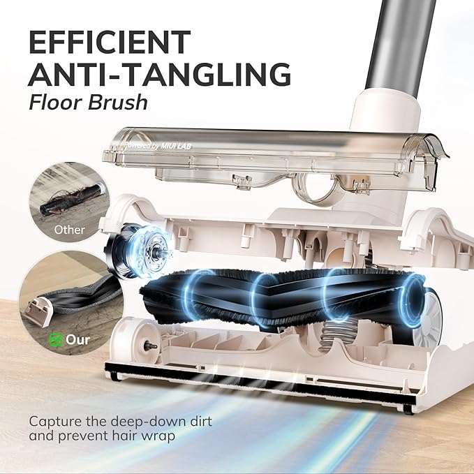MIUI Cordless Upright Vacuum Cleaner, 45000Pa M2 Powerful Suction Brushless Motor, V-Shaped Anti-Hair Tangle Brush, Optical Dust Detection, Stick Vacuum for Hard Carpet,Floor,Pet Hair
