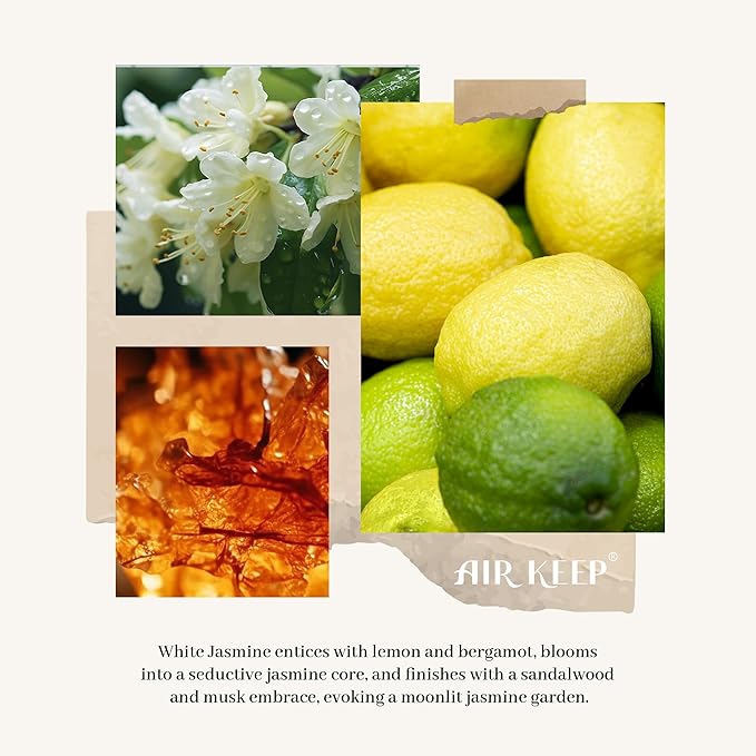 - Scent:White Jasmine.The fragrance captivates with a citrusy lemon and bergamot zing, blossoms into a seductive white jasmine heart, and finally settles into a creamy sandalwood and musk embrace, reminiscent of a moonlit stroll through an enchanting jasmine garden