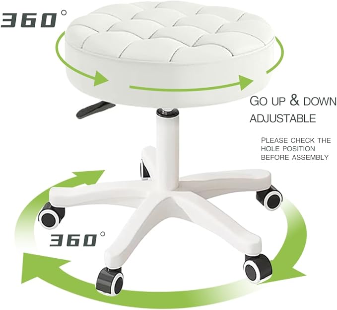 - 360 Degree Swivel: Slides effortlessly on adjustable gas-lift, 360 degree rotation rolling caster wheels for optimal angle without moving the stool, smooth-rolling for safety purpose.