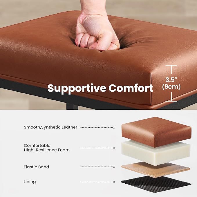 - Sturdy and Durable: Crafted with a strong metal frame and premium fabric/leather upholstery, our bar stools are built to withstand daily use and resist wear and tear.The solid premium metal frame provides stability and durability, while the cushioned seat provides comfort during extended use. Maximum load: 330 pounds.