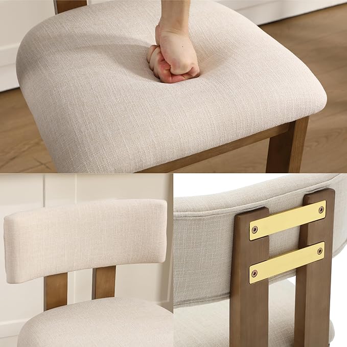 26” Counter Stools Set of 2 Counter Height Bar Stools with Back and Solid Wood Legs Modern Farmhouse Linen Upholstered Kitchen Bar Stools Countertop Chairs, Beige