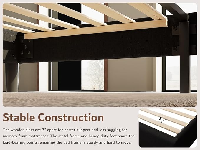 - Rock-Solid Stability: Crafted with a heavy-duty metal frame and 12 solid wood slats, it supports up to 1000 lbs with 8 reinforced points for ultra-sturdy sleep