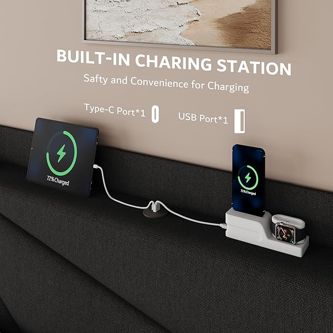 - Special Feature : Noise-Free, Storage Wingback Headboard, Type-C & USB Charging Ports, Upgraded Heavy-Duty Structure Noise-Free, Storage Wingback Headboard, Type-C & USB Charging Ports, Upgraded Heavy-Duty Structure