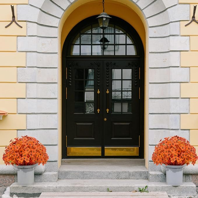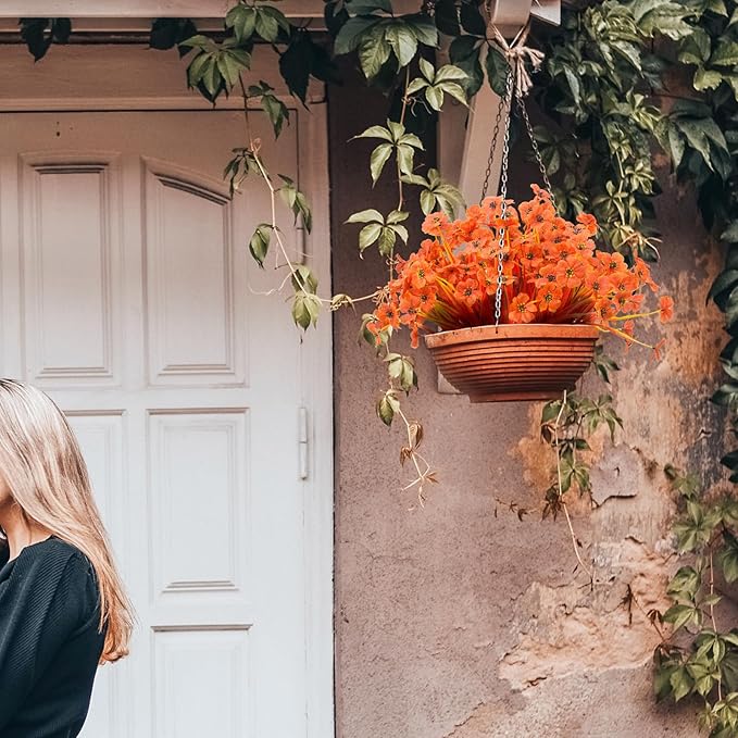 15 Bundles Artificial Flowers UV Resistant Outdoor Plants No Fade Faux Plastic Shrubs Fake Silk Flowers Window Box Garden Porch Home Decoration(Deep Autumn Orange)