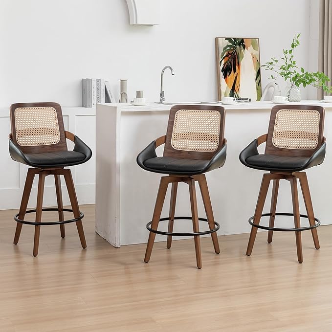 - Seamless Rotation and Sophisticated Walnut Craftsmanship: Featuring a 360-degree swivel, our counter height bar stools allow smooth, unrestricted movement without repositioning; perfect for social settings where interaction is key; sturdy wooden legs offer reliable stability