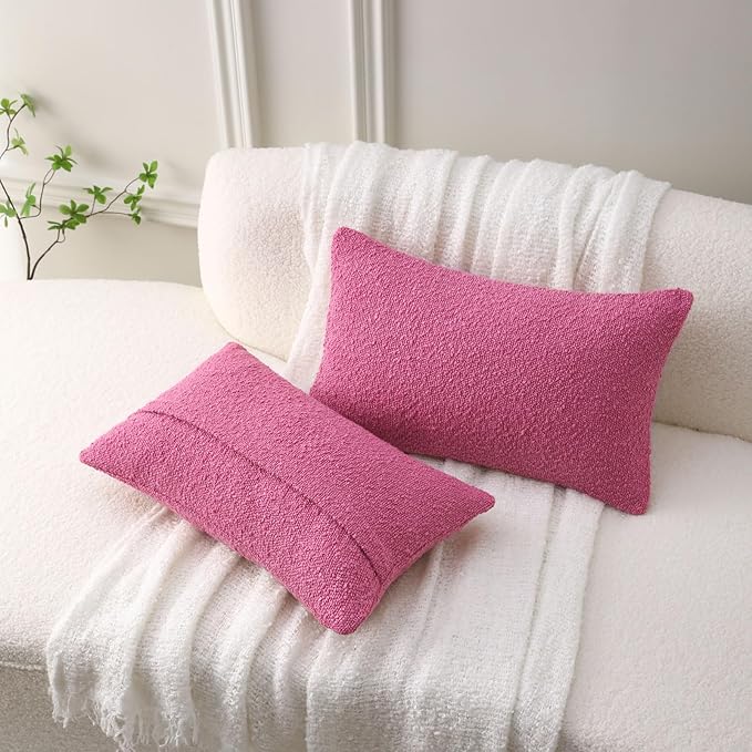 FUTEI Pack of 2 Hot Pink Decorative Throw Pillow Covers 12x20 Inch Soft Cozy Solid Boucle Textured Lumbar Pillow Cases,Modern Home Decor for Couch Bed Living Room