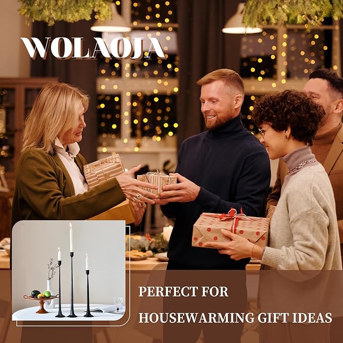 - TAPER CANDLE HOLDER -Retro with modern,traditionary style , different height candlesticks, the visual effect of the high and low undulating candlelight gives you a wonderful feeling.The candle holders cup is designed as a red wine glass, heavy round base, the black candlestick holders firm and stable. Made of high-quality metal materials, anti rust and anti-corrosion, shiny luster .