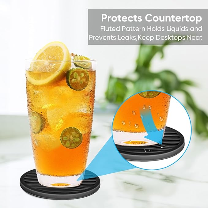 - NON-SLIP & NON-STICK:Drinks coasters are double sided design,one side has a groove pattern to contain spilled liquids and prevent them from sticking to glasses or bottles,the other side is designed with a special non-slip surface to keep glasses from moving around.