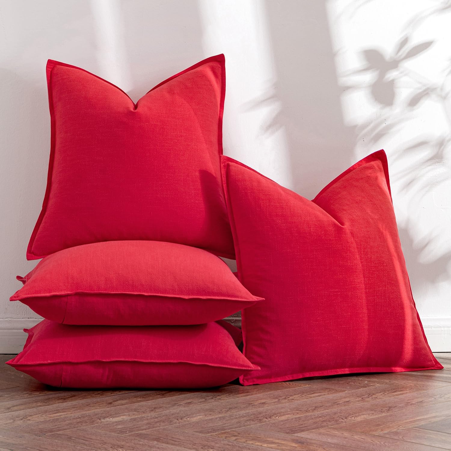 MIULEE Christmas Red Linen Pillow Covers Pack of 4 Decorative Natural Solid Throw Pillow Covers Soft Accent Boho Farmhouse Couch Pillowcases Modern Home Decor for Living Room Bed Sofa 20x20 Inch