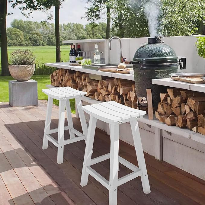 nalone 24 Inch Outdoor Bar Stools Set of 2, HDPE Bar Chairs with Footrest, Weather Resistant Barstools Outside Counter Height Stools for Patio Balcony (White, 24'' Barstools Set of 2)