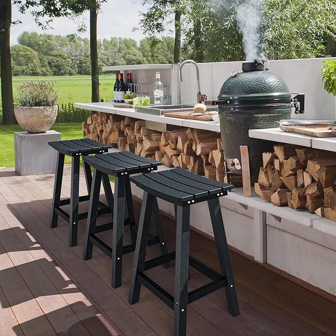 - All Weather Material - HDPE material is waterproof, low-maintenance, non-slip, scratch-resistant, and easy to clean. Our bar stools are built to withstand all seasons and various climates including sun, snow, rain, and hefty winds. It will not fade, rot, crack, or rust even after long use.