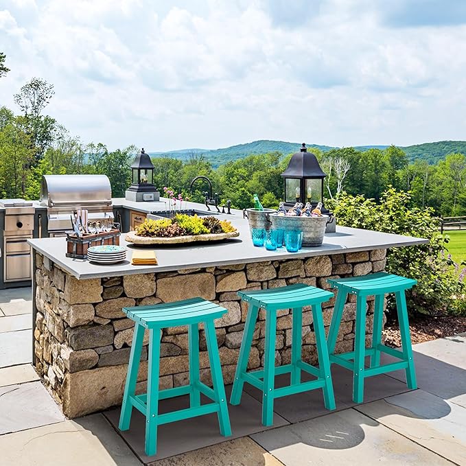- All Weather Material - HDPE material is waterproof, low-maintenance, non-slip, scratch-resistant, and easy to clean. Our bar stools are built to withstand all seasons and various climates including sun, snow, rain, and hefty winds. It will not fade, rot, crack, or rust even after long use.