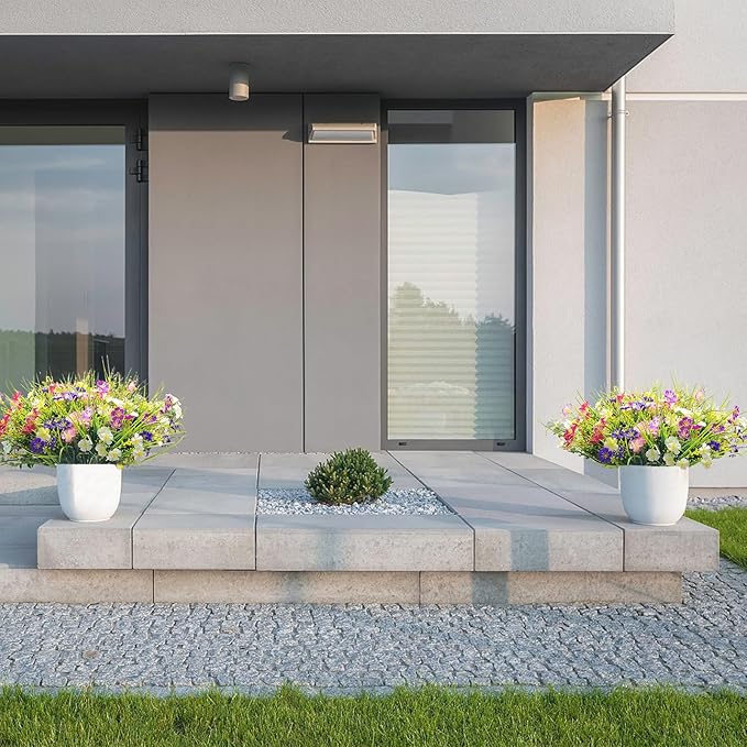 - LOW MAINTENANCE: these artificial flowers are no watering or sunlight needed, just fluff the stems and enjoy the lovely faux colorful flowers look for outdoor planters, without the hassle of a real plant that needs care