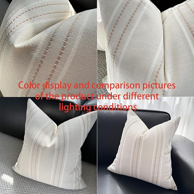 Hckot Hand Made Decorative Khaki Pillow Covers 18x18 Striped Throw Pillows Textured Linen Pillow Covers Farmhouse Decor Cushion Covers for Couch Bed Living Room, Khaki