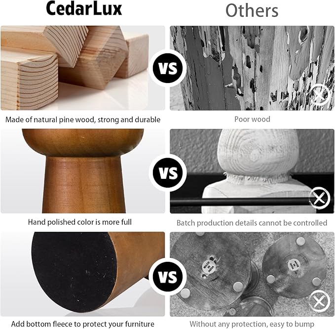 - [STURDY MATERIAL] Finely crafted to preserve the natural texture and smooth surface of the rustic candlestick. This modern candle holder is made of natural pine wood, topped with an iron wax cup, sturdy and durable. The base of the tall candlestick is equipped with felt to prevent it from sliding or scratching the furniture.