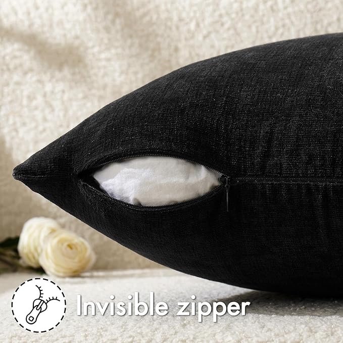 MIULEE Black Couch Pillow Covers 18x18 Inch, Set of 2 Soft Chenille Decorative Square Throw Pillow Covers Farmhouse for Sofa Living Room Bed