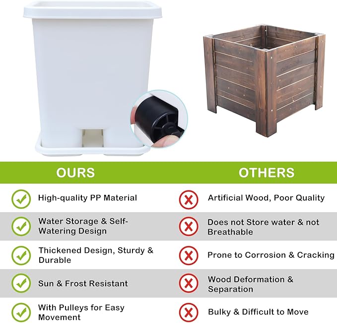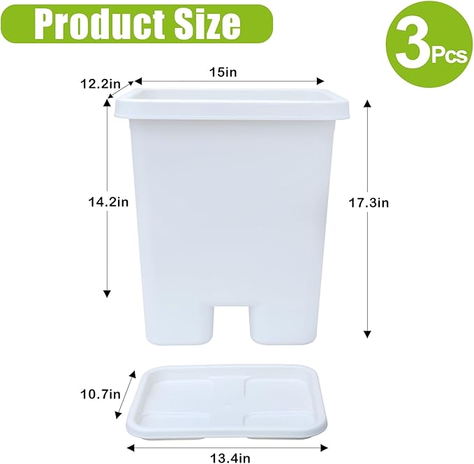 Growing Vegetable Planter Pot 3 Packs, 15 * 14.2 Inches Deep Rectangle Pots for Vegetable Fruit Flower, Large Planters with Trays, for Patio Garden Balcony Home Porch Yard Indoor Outdoor (White)