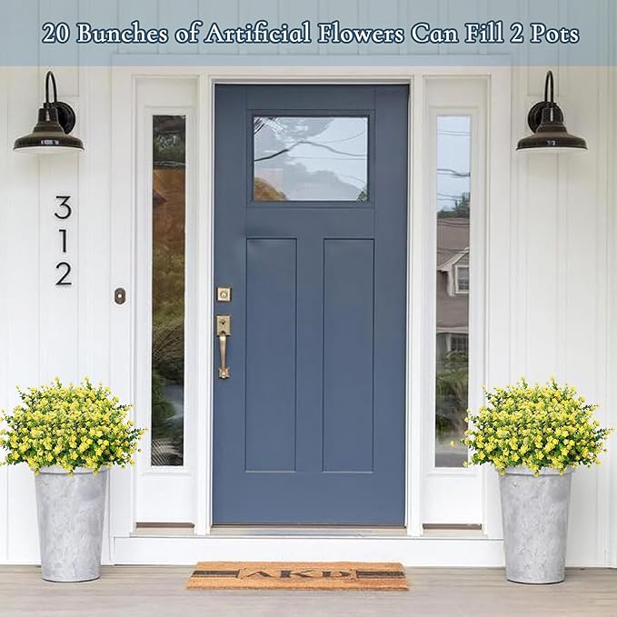 Outdoor Artificial Flowers UV Resistant, 20 Bundles Fake Realistic Floral Greenery Plants for Outside Porch, Window Boxes, Garden, Yard, Inside Home Table Decor, Yellow