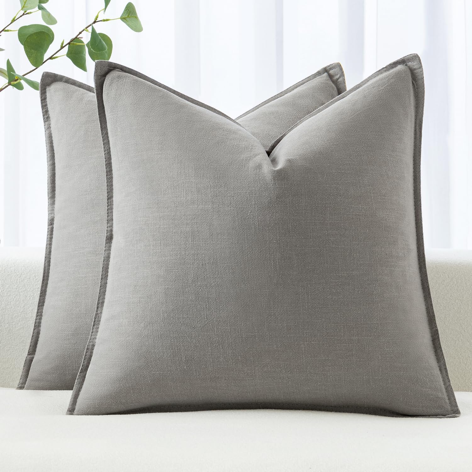 MIULEE Decorative Linen Pillow Covers 18x18 Inch Light Gray Boho Farmhouse Neutral Couch Throw Pillows for Bed Pack of 2 Accent Modern Pillowcase Sofa Livingroom Home Decor