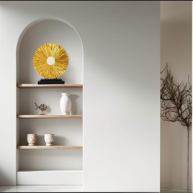 Minimalist Round Sculpture Decorative Objects Above Cabinet Decor Kitchen Modern Home Decor Items for Living Room Tv Stand, Center Pieces, Shelf, Coffee Table Decorations Accents (Gold)