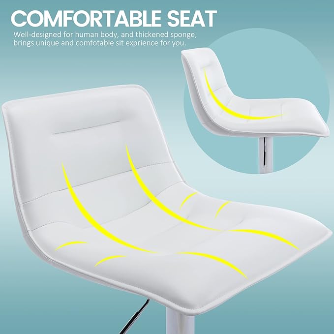 Brage Living Adjustable Bar Stools Set of 2, Modern PU Leather Swivel Counter Height Barstools with Back, Armless Airlift Curved Bar Chairs for Kitchen Dining Cafe (Pearl White)